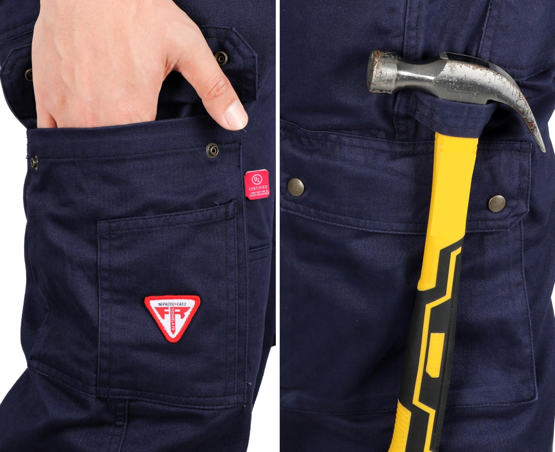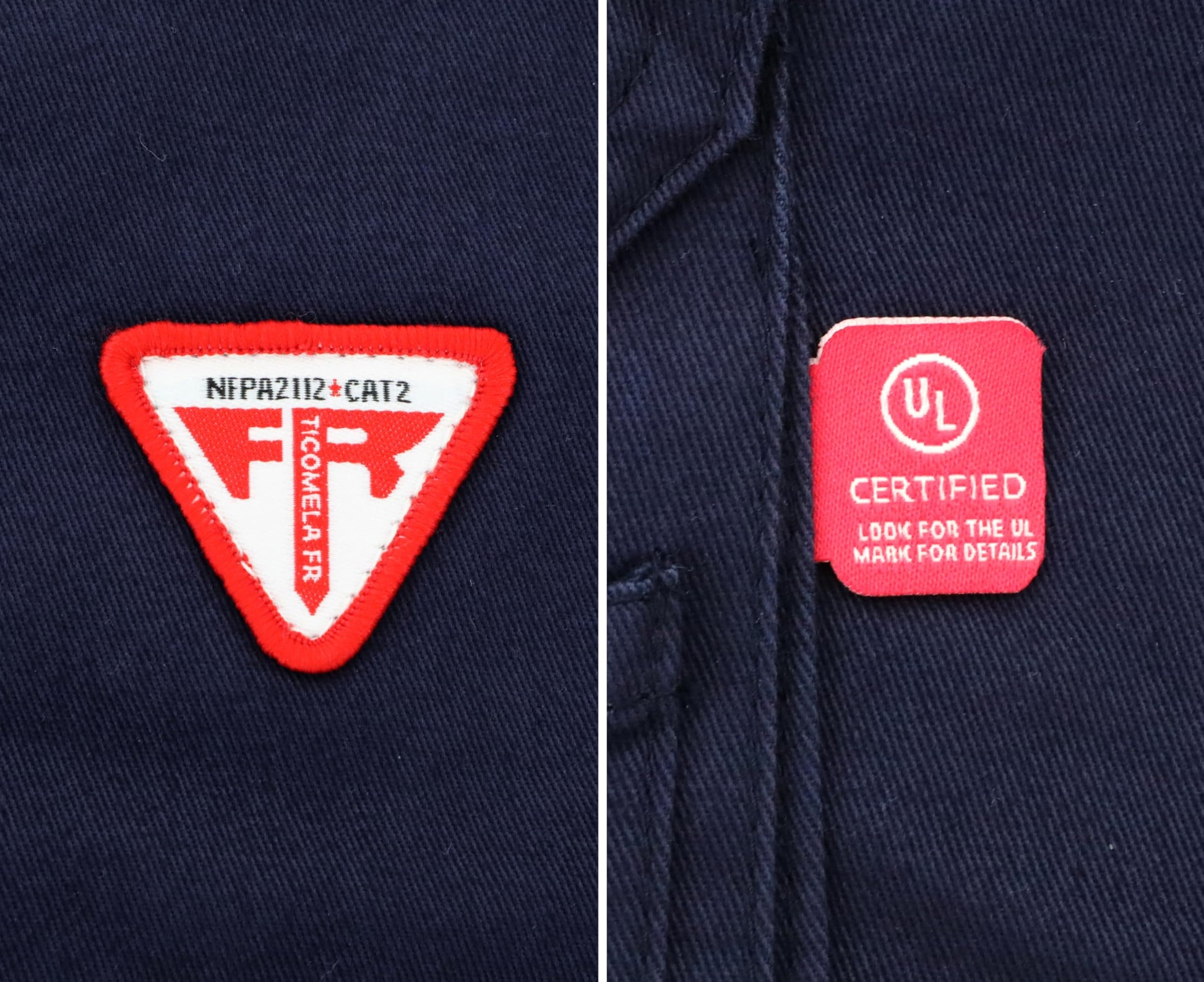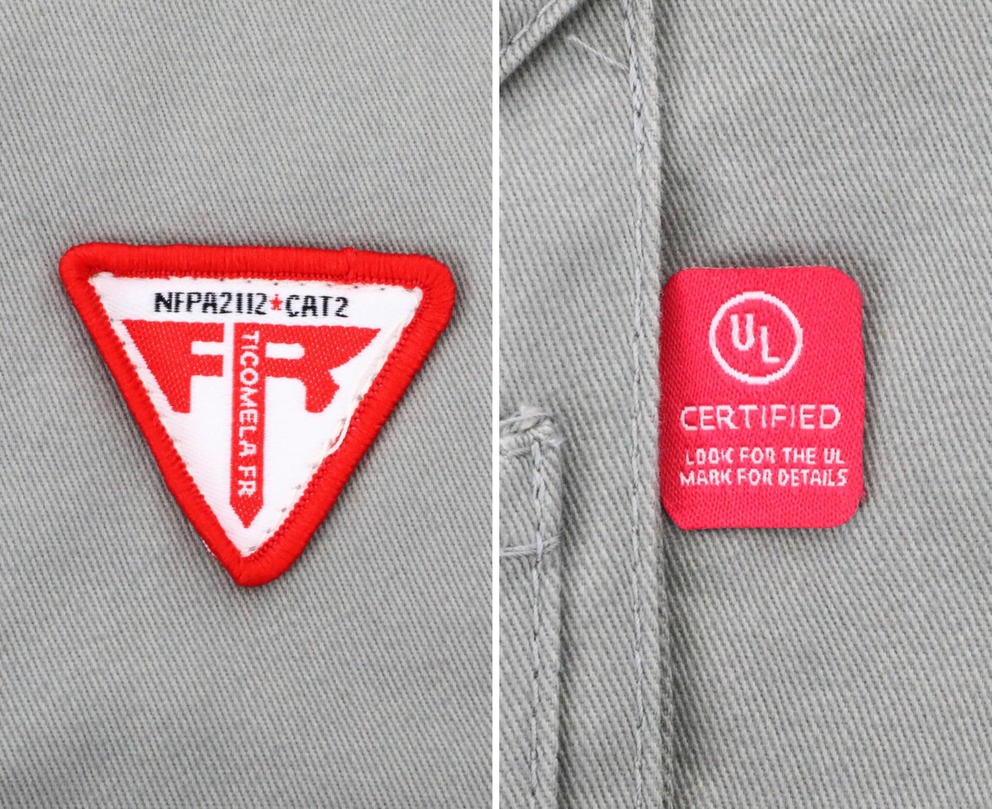 - FR MATRIALS:7.5OZ Cotton Twill FR Treated,FR Buttons,FR Sewing Threads!Clear FR Tag on Phone Pocket front.More FR info On Neck Tag About UL Certification.We Attached A Small Sample Inside Package For Cunstomers Simple FR Try